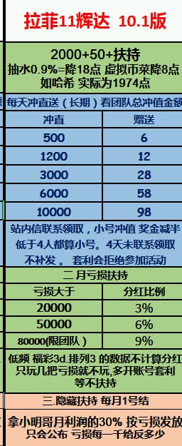 1. 辉达(拉菲11)待遇简介: 1982+50+浮动+月分红 抽水降点后 实际最高就是1982 如奇趣 各菜种定位胆玩法-18点就是真实的点位 团队扶持 每日充值送+分红扶持+销量送